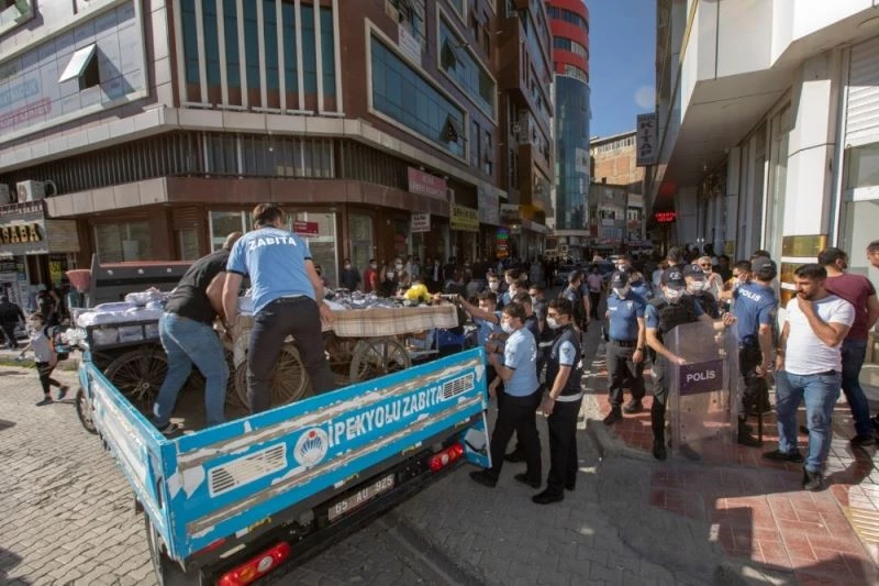 Amaçlarının sağlıklı koşullarda tüketiciye ürünlerin ulaştırılması ve kaldırım işgaline son verilmesi olduğunu belirten İpekyolu Belediyesi Zabıta Müdürlüğü ekipleri, çalışmalarının devam edeceğini belirttiler.
