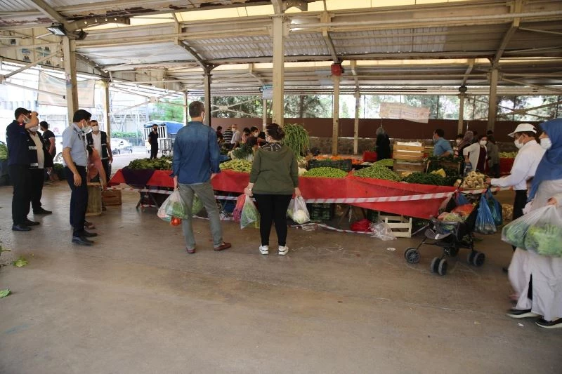 Zabıta müdürlüğü, ilçede belirlenen 10 farklı noktada kurulan semt pazarlarında tedbiri elden bırakmadı. Esnafı tek tek uyararak, Covid-19 tedbirleri kapsamında belirlenen kurulları uygulanmasını sağlayan zabıta ekipleri, alışverişe gelen vatandaşları da maske ve mesafe konusunda uyardı. Esnaflar arasında mesafe kontrolünü de sık sık denetleyen zabıta ekipleri, bariyerlerle de giriş ve çıkış noktalarını düzenledi. Hijyen koşullarını en üst düzeyde tutan Zabıta Müdürlüğü ekipleri, semt pazarlarında sebze ve meyve satışı dışında temizlik, giyim, züccaciye, oyuncak, süs eşyası, çanta gibi ürünlerin satışına izin vermedi.