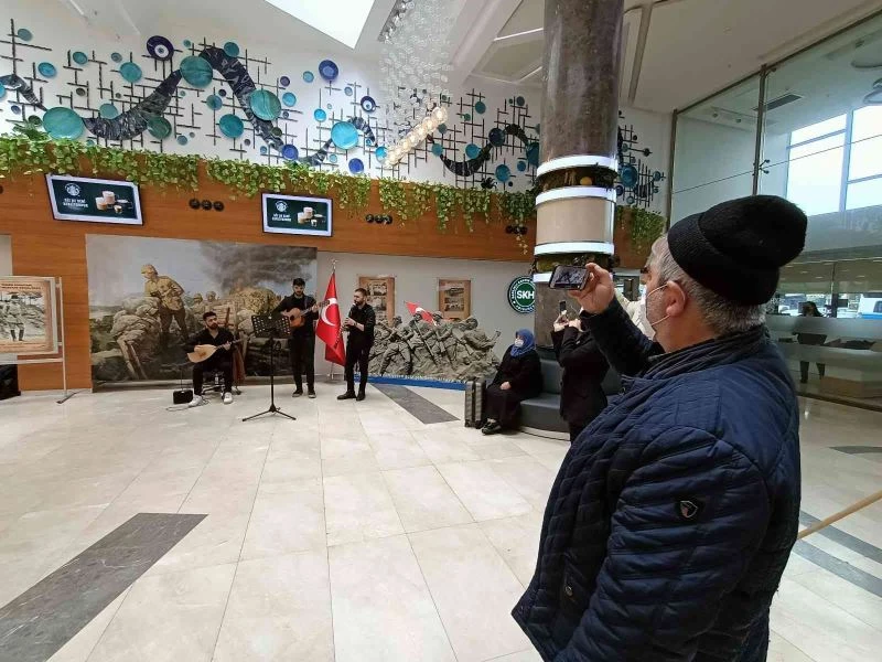 Hastane ana girişinde yapılan etkinlikte, Çanakkale Zaferi türküleri seslendirildi. Hasta ve hasta yakınlarının büyük ilgi gösterdiği dinletide duygulu anlar yaşanırken müziklere de eşlik ettiler.