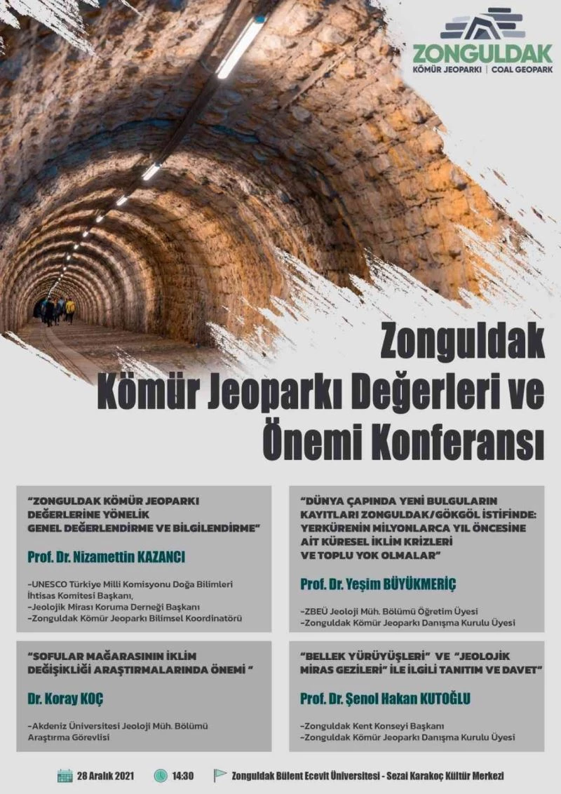 Konferansta Prof. Dr. Nizamettin Kazancı, Zonguldak Kömür Jeoparkı değerlerine yönelik genel değerlendirme ve bilgilendirme yapacak. Prof. Dr. Yeşim Büyükmeriç ise dünya çapında yeni bulguların kayıtları Zonguldak/Gökgöl istifinde yerkürenin milyonlarca yıl öncesine ait küresel iklim krizleri ve toplu yok olmalar konusunda bilgiler aktaracak. Dr. Koray Koç ise Sofular Mağarasının iklim değişikliği araştırmalarında önemini aktaracak.