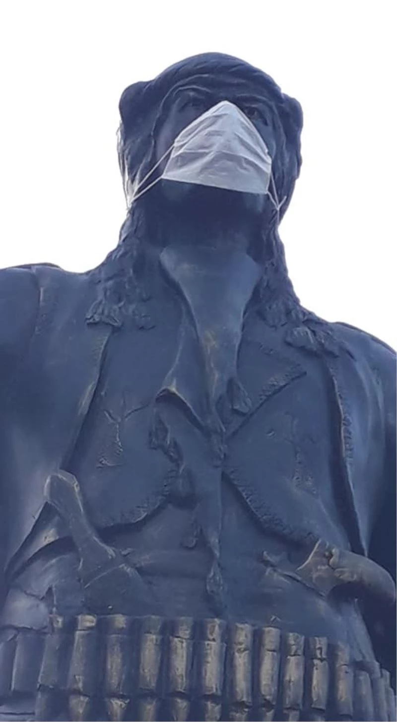 Kütahya’nın Simav ilçesinde maske kullanımına dikkat çekmek ve farkındalık oluşturmak amacıyla, ilçe girişindeki hastane kavşağında bulunan ‘Simav Zeybeği Anıt Hekkeli’ne maske takıldı.