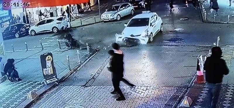 Yaşanan feci kaza bir iş yerinin güvenlik kameraları tarafından saniye saniye kaydedildi. Görüntülerde, otomobil sürücüsünün caddeye çıktığı görülüyor. Otomobil caddenin yarısına geldiğinde hızla gelen bir motosiklet otomobile çarpıyor. Motosikletin üstünde bulunan gençler havaya fırlayarak yere aydınlatma direğine çarpıyor.