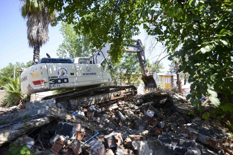 Ekipler ilk olarak Gazi Bulvarı’nı mahalleye bağlayan 1171 sokak üzerinde yer alan ve çıkan bir yangın sonrası tamamen kullanılamaz hale gelen binayı yıktı. Sabah saatlerinde mahalleye gelen ekipler, gerekli güvenlik önlemlerini alarak iş makineleriyle binanın yıkımını gerçekleştirdi.
