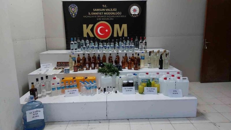 Gözaltına alınan 19 kişi ile birlikte 107 litre el yapımı içki (rakı, viski, votka, likör), 63,5 litre etil alkol, 510 adet alkollü içki şişe etiketi, 377 adet sahte bandrol, 10 adet alkol kiti, 4 adet içki üretiminde kullanılan aparat ve 4 kök Hint keneviri ele geçirildi.