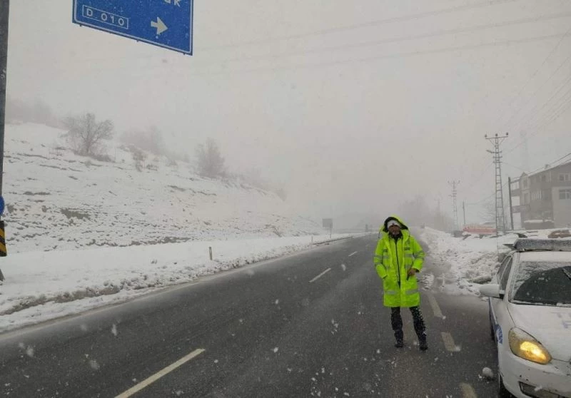 Zonguldak’ta pazar günü başlayan kar yağışı bugün öğlen saatlerinde şiddetini artırdı. Yüksek kesimlerde etkili olan kar yağışı sonrası bazı noktalarda ulaşımda da sıkıntılar yaşanmaya başladı. Kdz. Ereğli İlçe Emniyet Müdürlüğüne bağlı bölge trafik ekipleri Zonguldak - İstanbul arası karayolunun Ören Mahallesi kavşağında geçişleri kontrollü olarak sağlıyor. Yoğun kar yağışı nedeniyle Zonguldak yolunun karla kaplanması nedeniyle polis ekipleri tarafından tonajlı ve uzun araçların geçişlerine kapatıldı. Karayolları ekipleri ulaşımın aksamaması için çalışmalarını sürdürürken, kar yağışı aralıksız devam ediyor.