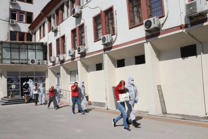 Mersin’de ’koli’ kod adıyla 22 adrese düzenlenen şafak operasyonunda fuhuş yapan, yaptıran, aracılık eden, yer temin ettiği iddia edilen 80 kişi gözaltına alındı. Şüphelilerden 62’si ifadesinin alınmasının ardından serbest bırakılırken, 2’si kadın 18 kişi adliyeye sevk edildi. Kadınlara silah zoruyla fuhuş yaptırdıkları ileri sürülen şüphelilerin, müşterilerle konuşma sırasında fuhuşa zorlanan kadınlar için ’koli’ kodunu kullandıkları ortaya çıktı