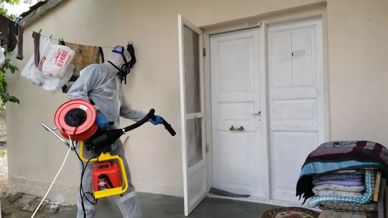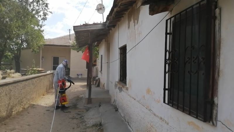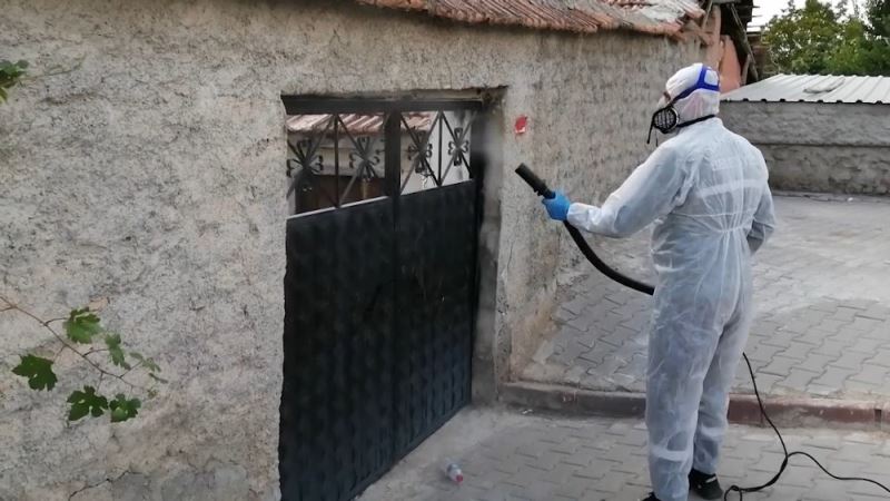 Kırıkkale'nin Yahşihan ilçesinde pozitif vaka ile temaslı olduğu tespit edilen kişilerin karantinada bulunan evleri ve ortak kullanım alanları dezenfekte ediliyor.