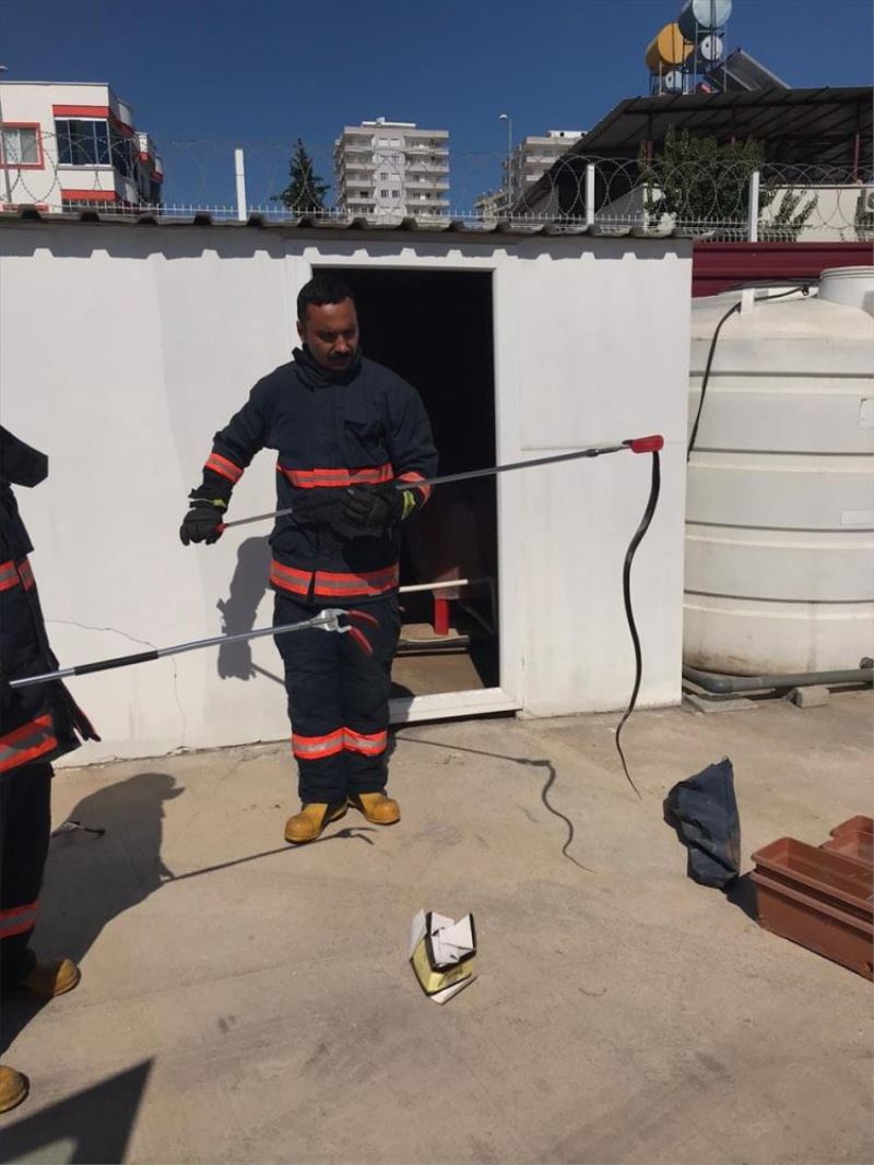 İhbar üzerine bölgeye giden Büyükşehir Belediyesi İtfaiye Daire Başkanlığına bağlı Afet, Arama ve Kurtarma Şube Müdürlüğü ekipleri yaklaşık 1 metrelik yılanı yakaladı.