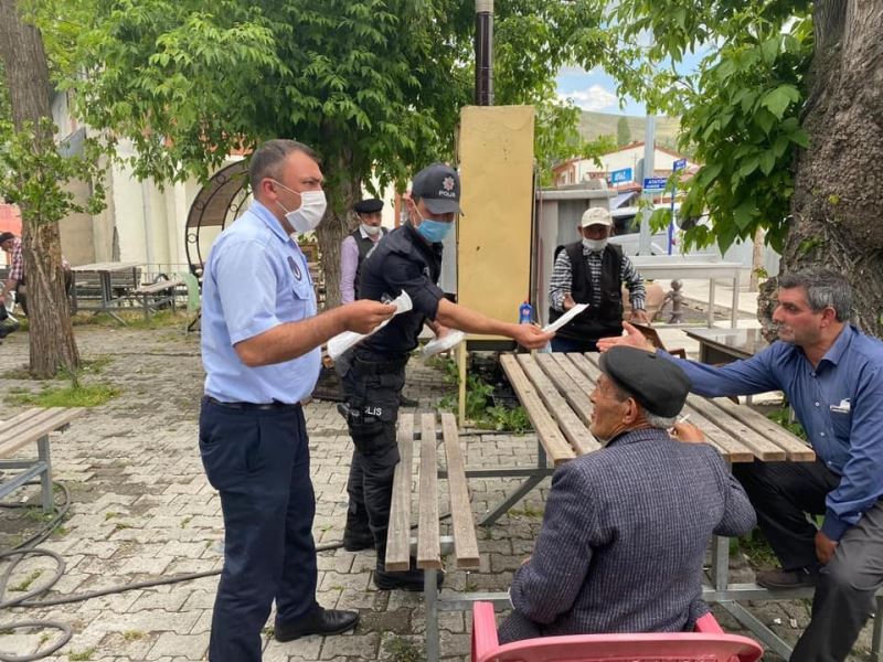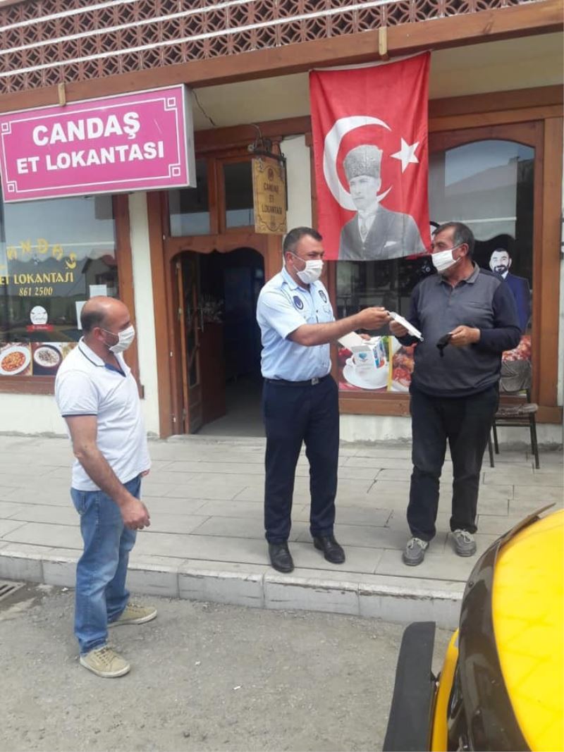 Şenkaya Belediyesi ve İlçe Emniyet Müdürlüğü ekipleri ilçe merkezinde maske dağıttı.