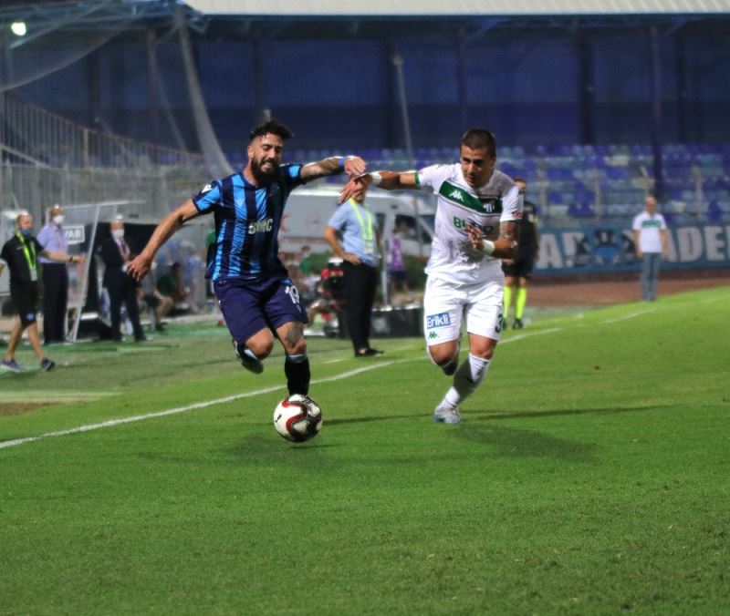 TFF 1. Lig Play-Off Yarı Final rövanş maçında Adana Demirspor, Bursaspor'u ağırlıyor. Mücadelenin ilk yarısı golsüz beraberlikle tamamlandı.