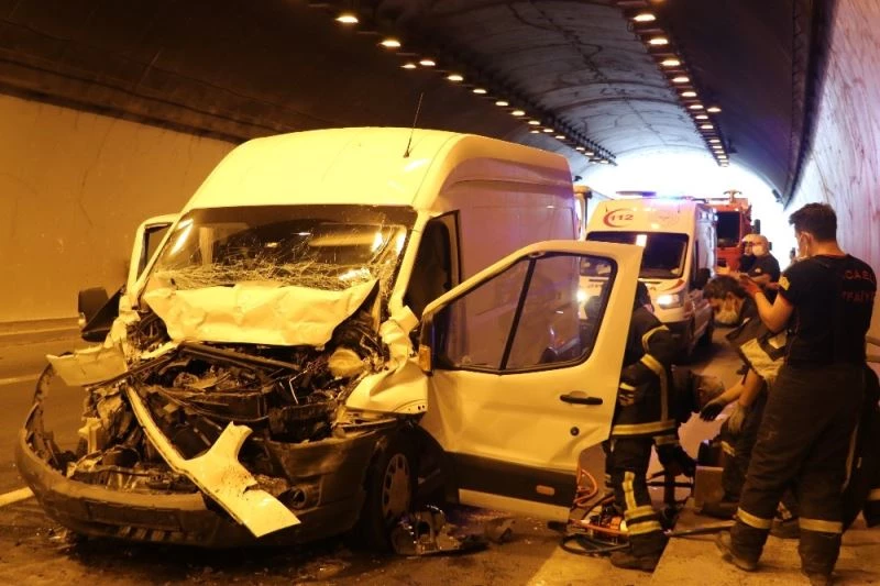 Kaza, Kocaeli’nin İzmit ilçesi TEM Otoyolu Korutepe Tüneli’nde meydana geldi. Edinilen bilgilere göre, Yasin Ç. (36) 34 AFT 410 plakalı Ford marka panelvan araç, önünde seyir halinde olan sürücüsü ve plakası öğrenilemeyen araca çarptı. Kazada minibüs içerisinde sıkışan Yasin Ç. yaralandı. Kazayı gören vatandaşlar durumu hemen 112 Acil Yardım ekiplerine bildirdi. İhbar üzerine olay yerine gelen itfaiye ekipleri tarafından Yasin Ç. sıkıştığı yerden çıkartılarak sağlık ekiplerine teslim edildi.
