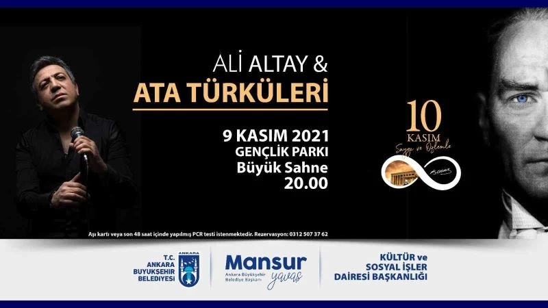 Büyükşehir Belediyesi Kültür ve Sosyal İşler Daire Başkanlığı, 9 Kasım’da Ali Altay’ın Gençlik Parkı Büyük Sahne’de saat 20.00’de vereceği ‘Ata Türküleri’ konserine ev sahipliği yapacak.