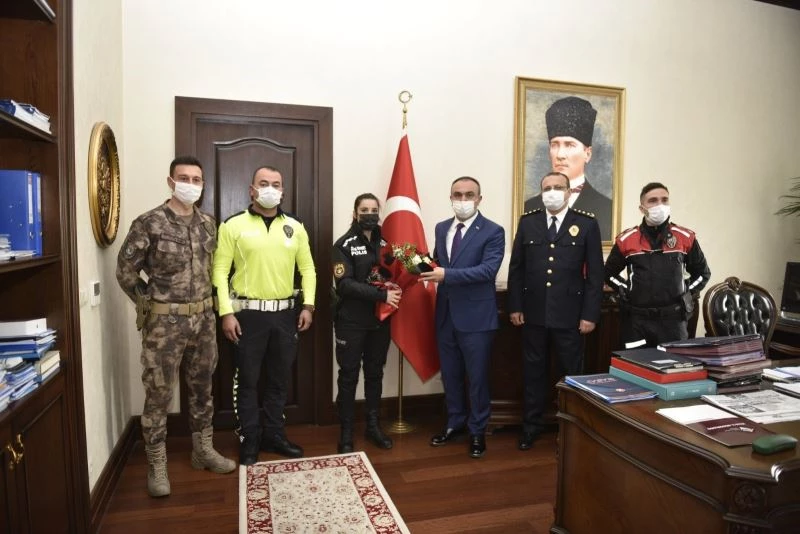 Vali Soytürk, Türk Polis Teşkilatı’nın kuruluşunun 176. yıldönümünü hep birlikte kutlamanın gurur ve mutluluğunu yaşadıklarını ifade ederek, 10 Nisan Polis Haftası nedeniyle Emniyet Müdür Vekili Ahmet Güngör ile emniyet personelini hafta nedeniyle kutladığını söyledi.