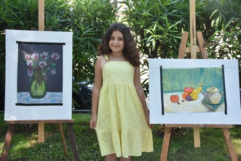 Dila Minel Şahin, “10 yaşındayım Gazi Mustafa Kemal İlkokulu’na gidiyorum. Ortaokula geçeceğim. 3 yıldır yaptığım tüm emeklerim burada. Daha var ama onların üzerinde daha fazla çalışıyorum. Ressamların çizdiği resimleri yapıyorum içine kendi fikirlerimi katıyorum. Kendi özgün çizimlerimde oluyor. Resim çizmeyi seviyorum. Çok fazla resmim var. Annemin, babamın, öğretmenlerimin katkısı sonucunda bana yardım ettiler ve böyle güzel resimler ortaya çıktı. Bana destek çıktılar ‘yapabilirsin’ dediler. Ben de yaptım. Büyüyünce oyuncu olmak istiyordum, ressam da olmak istiyorum daha karar veremiyorum. Van Gogh’dan çok ilham aldım. Odasını çizmiş, o benim çok hoşuma gitti” dedi.