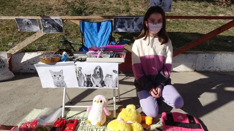 Karabük’te 10 yaşındaki İpek Uluyurt, çoğu kendisinin olan eşyaları satarak elde ettiği geliri sokak hayvanlarına mama almak için harcıyor.