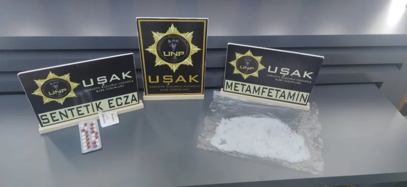 Uşak İl Emniyet Müdürlüğü’ne bağlı Narkotik Suçlarla Mücadele Şube Müdürlüğü ekipleri yapılan denetlemeler sırasında şüphe üzerine bir aracı durdurdu. Araç içerisinde yapılan aramada 100 gram metamfetamin ve 18 adet sentetik ecza hap bulunurken araç içerisindeki 2 şüpheli de gözaltına alındı. Emniyetteki işlemlerinin ardından adliyeye sevk edilen şüpheliler tutuklanarak cezaevine gönderildi.