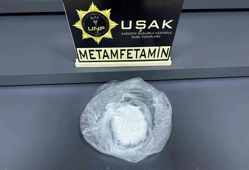 Uşak İl Emniyet Müdürlüğü’ne bağlı Narkotik Suçlarla Mücadele Şube Müdürlüğü ekipleri şüphe üzerine durdurdukları araçta yapılan arama sonrasında 100 gram metamfetamin buldu. Araç sürücüsü E.T. ise ekiplerce gözaltına alındı. Emniyetteki işlemlerin ardından adliyeye sevk edilen sürücü, çıkarıldığı mahkemece tutuklandı.