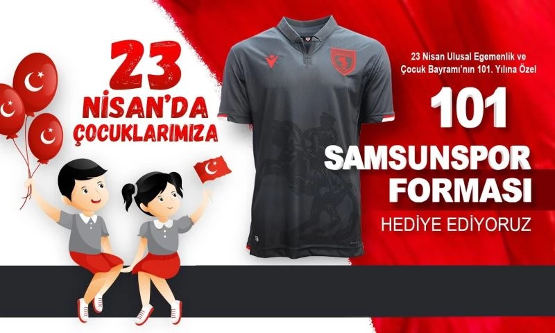 Samsun Büyükşehir Belediyesi, 23 Nisan Ulusal Egemenlik ve Çocuk Bayramı’nın 101.yılı münasebetiyle 101 çocuğa, sosyal medyadan yaptığı çekilişle Samsunspor forması hediye etti. Kazananların formaları kargo ile adreslerine gönderilecek.