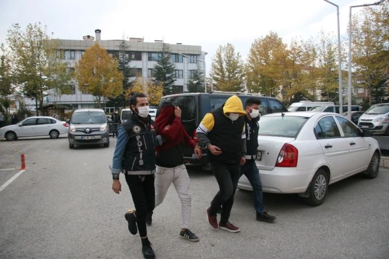 106 adet sentetik uyuşturucu hapla yakalanan 4 kişi adliyeye çıkarıldı
