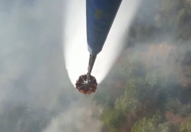 Muğla-Denizli il sınırındaki ormanlık alanda çıkan yangına havadan 11 helikopter ve 9 uçak müdahale ediyor.