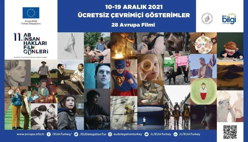 11’inci AB İnsan Hakları Film Günleri, Covid-19 nedeniyle çevrimiçi gerçekleştiriliyor. 28 seçkin film ve yönetmen söyleşileri ile birlikte www.festivalscope.com/page/euhrfd-2021 adresi üzerinden seyircilerle buluşmaya devam ediyor. Filimler, iklim krizi temalı çalışmalardan, kadının toplumdaki yeri, toplumsal cinsiyet eşitliği, eğitim hakkı, sağlık hizmetlerine erişebilme hakkı, göç ve kültürel diyalog gibi çeşitli konuları kapsıyor. Filmlerden bazıları bizi, gelecekte yapay zekânın yerine dair düşünmeye davet ederken, belgesel, yarı belgesel, kurgu, animasyon, stop-motion gibi çeşitli tür ve teknikteki bu ödüllü filmler de her yaş ve kesimden seyircinin beğenisine sunuluyor.