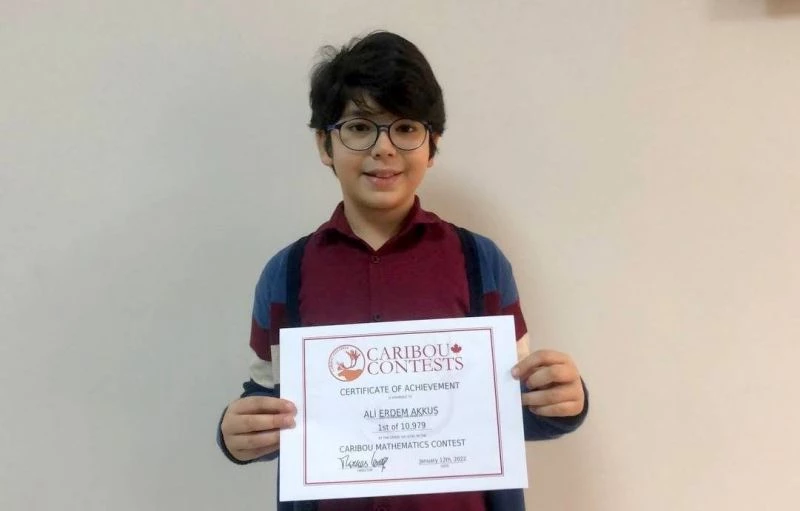 Dünya çapında online olarak düzenlenen Kanada merkezli Uluslararası Caribou Matematik Yarışması her yıl 6 defa olmak üzere 2, 3-4, 5-6, 7-8, 9-10, 11-12 sınıf kategorilerinde yapılıyor. Bu yıl yarışmaya Osmaniye’den 5-6. sınıf kategorisinde Şehit Veli Demiryürek Bilim ve Sanat Merkezi 5. sınıf öğrencisi 11 yaşındaki Ali Erdem Akkuş da katıldı. Uluslararası Caribou Matematik Yarışması’nda 15 soruyu doğru cevaplayarak 39 ülkeden 10 bin 979 öğrenciyi geride bırakan Akkuş, dünya birincisi oldu.