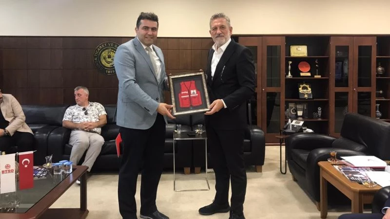 Türk Kızılay Bursa Şubesi, Türkiye’nin önde gelen meslek kuruluşları arasında yer alan Bursa Ticaret ve Sanayi Odası’na (BTSO) ziyaret gerçekleştirdi. Türk Kızılay Bursa Şube Başkanı Prof. Dr. Murat Tutanç, “1911 yılında şubemizin kuruluşunda çok büyük pay sahibi olan, 110 yılı aşkın süredir ilgisini ve desteğini hiç eksik etmeyen BTSO’ya Türk Kızılay adına teşekkürlerimizi sunuyoruz” dedi.