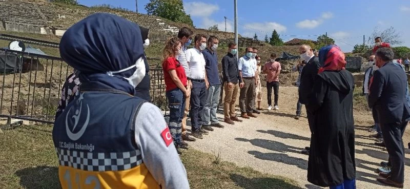 DÜZCE(İHA) – Düzce Belediyesi tarafından yürütülen tarihi Konuralp “Prusias ad Hypium” kalıntılarında kazı çalışmaları devam ediyor. Kazılara insanların hayatlarını kurtarmak için canla başla çalışan Düzce İl Sağlık Müdürlüğü’ne bağlı 112 Acil Sağlık ekipleri ile afet ve doğal afetlerde afetzedelere medikal müdahale yapmak için kurulan UMKE ekipleri de kazma ve küreklerle kazı yaparak destek verdi.