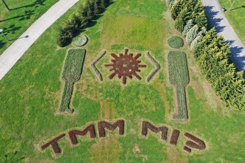 İzmit Körfezi kıyısında Kocaeli’nin en büyük endüstriyel dönüşüm projesi olan Sekapark’tan başlatılan çalışmada rengarenk açan laleler ise havadan görüntülendi. Görüntülerde, lalelerle oluşturulan figürlerle, vatandaşlara pandemiye yönelik mesajlar verildiği görünüyor.