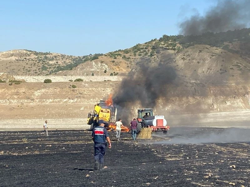 Yangın köylülere ait traktörler ve itfaiye ekiplerince ormanlık alana ulaşmadan söndürülürken, biçerdöver yanarak kullanılamaz hale geldi.