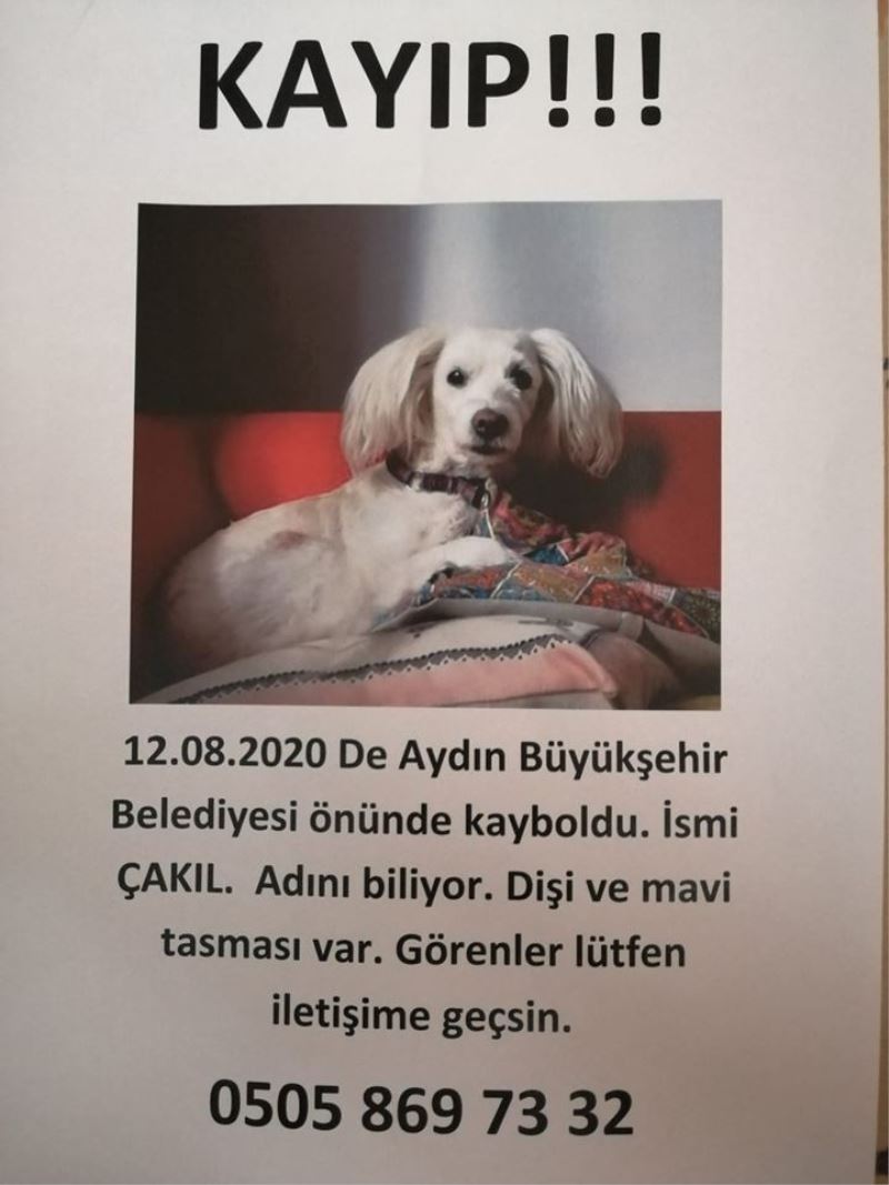 Çakıl isimli köpek, Aydın’ın Efeler ilçesinde 12 Ağustos’da Aydın Büyükşehir Belediyesi önünden kayboldu. Teriyer cinsi olan köpeğinin kaybolmasına çok üzülen sahibi Onur Kılıç köpeğini bulmak için seferber oldu. Sokaklar afiş asıp vatandaşlara sorarak köpeğini arayan Kılıç, Çakıl’ı bulana ödül vereceğini söyledi. Çakıl’ın ismine duyarlı olduğunu kaydeden Kılıç, “Köpeğim Çakıl, 12 yaşında ve ismini biliyor. Dişi ve kaybolduğunda boynunda mavi tasması vardı. Köpeğimi bulan ya da görenlerin 0505 869 73 32 numaralı telefondan bana ulaşmasını rica ediyorum” dedi.