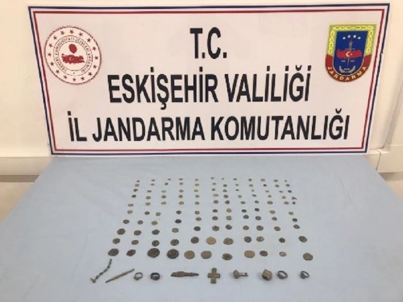 Edinilen bilgilere göre, Eskişehir İl Jandarma Komutanlığı’na bağlı Kaçakçılık ve Organize Suçlarla Mücadele Şubesi (KOM) ekiplerinin yaptığı istihbarat çalışmaları sonucu E.Ç., V.Ç., B.Ç. ve E.Ç. isimli şahısların ellerinde bulunan tarihi eser olduğu değerlendirilen çok sayıda sikke ve objeleri satmak amacıyla müşteri aradıkları öğrenildi. Şüpheli şahısların bulunduğu 06 FN 2487 plakalı araç, KOM Şube ve Çifteler İlçe Jandarma Komutanlığı ekiplerince Afyonkarahisar karayolu üzerinde durduruldu. Araç içerisinde ve şüphelilerin üzerlerinde yapılan aramalarda; Roma ve Bizans dönemlerine ait olduğu değerlendirilen 111 adet ait değişik madenlerden oluşan sikke, 5 adet yüzük, 1 adet haç (stavros), 8 adet metal obje olmak üzere toplam 125 parça tarihi eser niteliği taşıyan eşya ele geçirildi. Ele geçirilen objeler, Eskişehir Müze Müdürlüğü’ne teslim edilmek üzere muhafaza altına alındı.