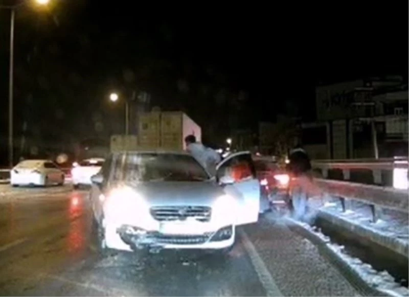 Buz pistine dönen yolda kaza anı araç içi kamerasına yansıdı. Araçlar ilerlemekte zorluk çekerken, kayganlaşan yolda araçlar ardı ardına kaza yaptı.