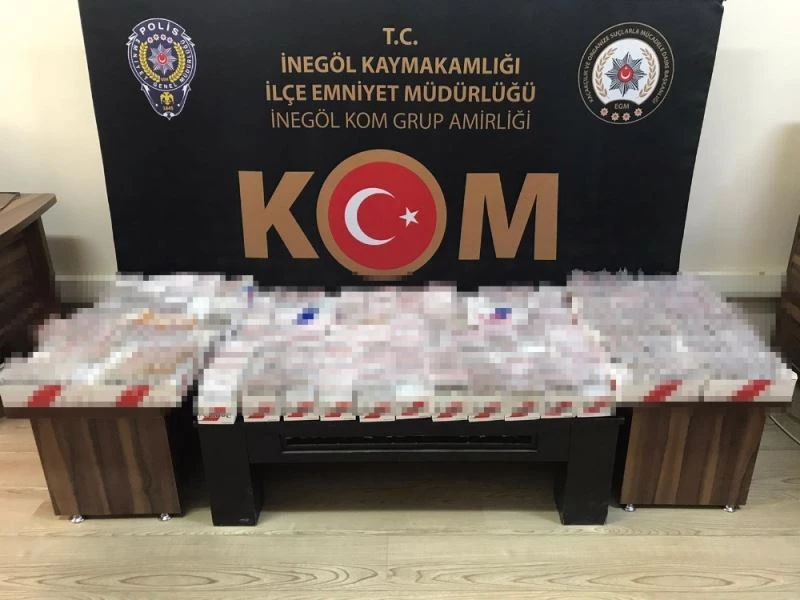 Edinilen bilgilere göre, İnegöl Kaçakçılık ve Organize Suçlarla Mücadele Grup Amirliği ekipleri yaptıkları çalışmalarda Akhisar Mahallesinde Büfeden kaçak olarak doldurulup sigara satışı yapıldığı bilgisi üzerine bahse konu iş yerine baskın yapıldı. Baskında işyerinde yapılan kontrollerde 13 bin adet doldurulmuş makaron ele geçirildi. İş yeri sahibi U.Y. isimli şahıs hakkında 5607 SKM kapsamında şahıs gözaltına alındı olayla ilgili soruşturma ise sürdürülüyor.