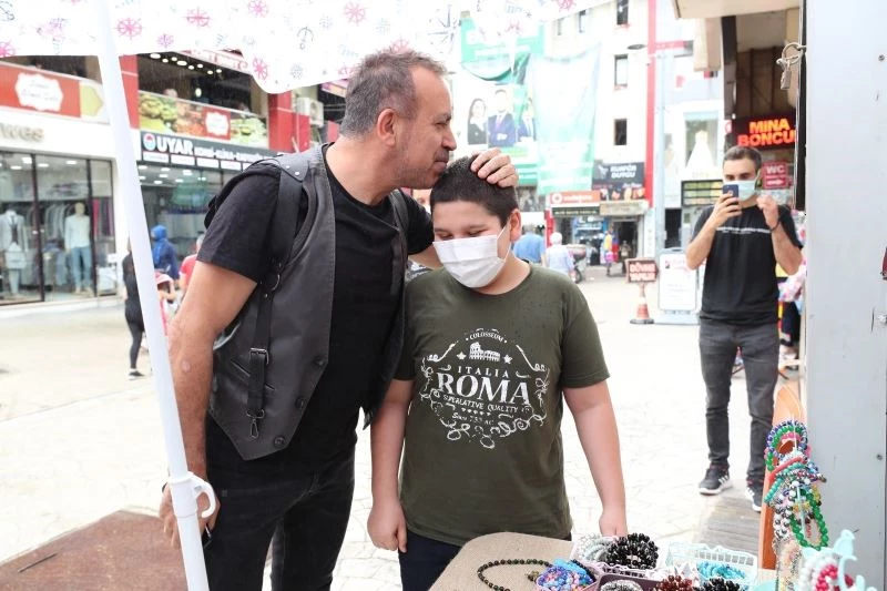 Tedavi masraflarını karşılamak için el emeği ürünlerini satan 13 yaşındaki Barış Altun’u, AHBAP Derneği kurucusu şarkıcı Haluk Levent ziyaret etti.