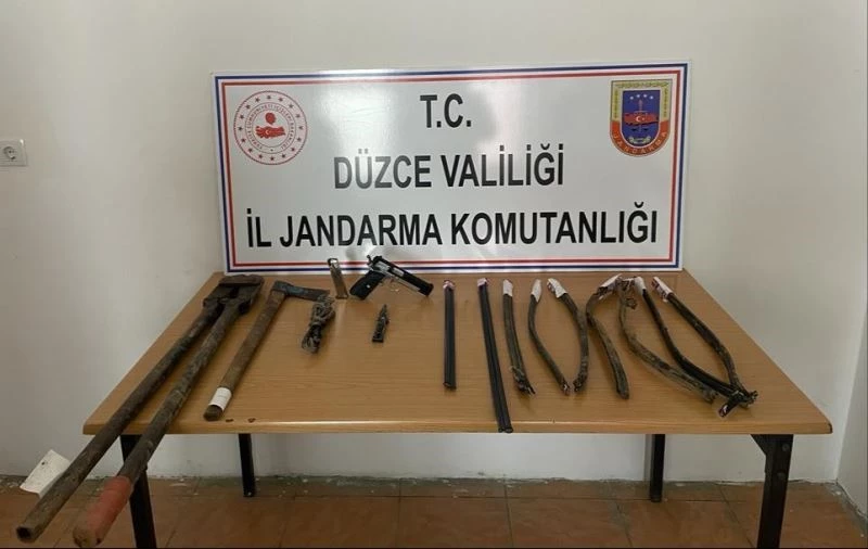 Edinilen bilgiye göre, jandarma ekipleri gece saat 03.00 sıralarında Düzce’nin Akçakoca ilçesi Kınık köyündeki devriye sırasında C.A. isimli şahsın otomobilini durdurdu. Yapılan kontrollerde C.A.’nın 1.33 promil alkollü olduğu belirlendi. Aynı zamanda aracın arka tarafından da kablo parçaları olduğu görüldü. Araçta yapılan aramada, bagajda 4 metre uzunluğunda Telekom kablosu, demir kesme makası, nacak, bıçak ve kuru sıkı tabanca ele geçirildi.