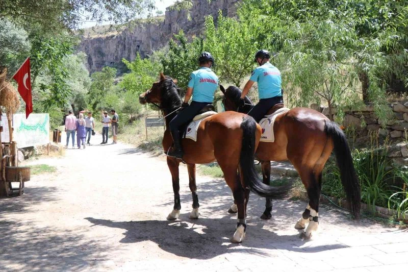 Aksaray’da 14 kilometrelik uzunluğuyla dünyanın en büyük kanyonları arasında yer alan Ihlara Vadisi’nde güvenlik atlı jandarma timleri tarafından sağlanıyor.