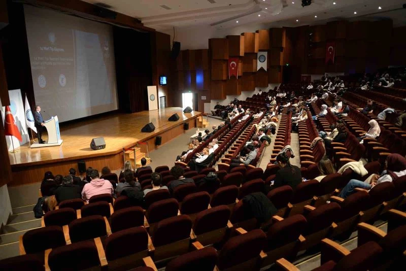 Tıp Fakültesi Dekanı Prof. Dr. Ekrem Kaya ise, 14 Mart Tıp Bayramı’nın Türkiye’deki modern tıp eğitiminin başlangıcı olarak kutlandığına işaret etti. Zaman içerisinde ülkenin geçtiği tüm buhranlı dönemlerde hekimlerin sorumluluklar almaktan asla çekinmediğini vurguladı. Hekimliğin sadece fen bilimlerini içeren bir meslek dalı olmadığının altını çizen Dekan Prof. Dr. Ekrem Kaya, “Hekimlik bir sanat, hekimlik bir zanaattır. Hekimlerimizin üzerine düşen tüm görevleri bugüne kadar gerek ülkemizde olsun gerekse de dünyada olsun yerine getirmişlerdir. Pandemi döneminde yine sağlık çalışanlarımız en ağır yükü üstlenmiş, şehitler vermiş ve yine de yakınmamıştır. Sürecin en iyi şekilde geride bırakılmasına vesile olmuşlardır. Deprem sürecinde de bölgeye ilk koşanlar arasında meslektaşlarımız bulunmaktadır. Hali hazırda bölgede görev yapmaya da büyük bir fedakârlık içerisinde devam etmektedirler. Her birine müteşekkir olduğumuzu iletiyor, görevlerinde kolaylıklar diliyoruz” açıklamasında bulundu.