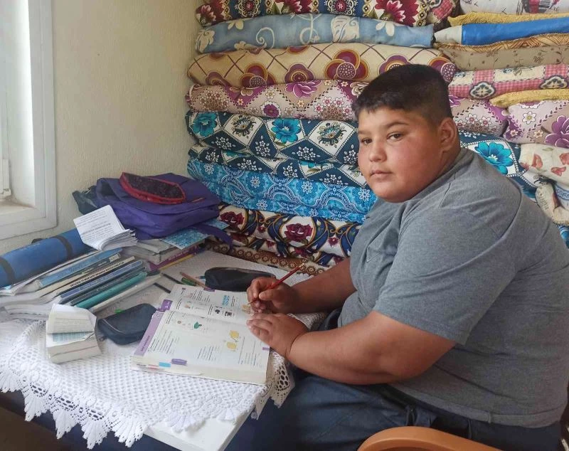 Türkoğlu ilçesine bağlı Yeşilyöre Mahallesinde yaşayan Teyfik Yıldız’ın en büyük hayali fazla kilolarından kurtulup tekrar okuluna gitmek.
