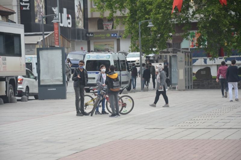Hükümetin uyguladığı yeni genelge ile korona virüs tedbirleri kapsamında normalleşme planı çerçevesinde 15-20 yaş arası gençler , saat 11.00 itibarıyla dört saat süreyle sokaklara indi.