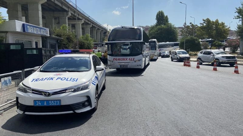 İstanbul Emniyet Müdürlüğü Trafik Denetleme Şube Müdürlüğü ekipleri, 15 Temmuz Demokrasi Otogarı’nın çıkışında otobüsleri teker teker durdurup denetimlerini gerçekleştirdi. Polis, denetimde otobüs sürücülerine ve yolculara uyarılarda bulundu.