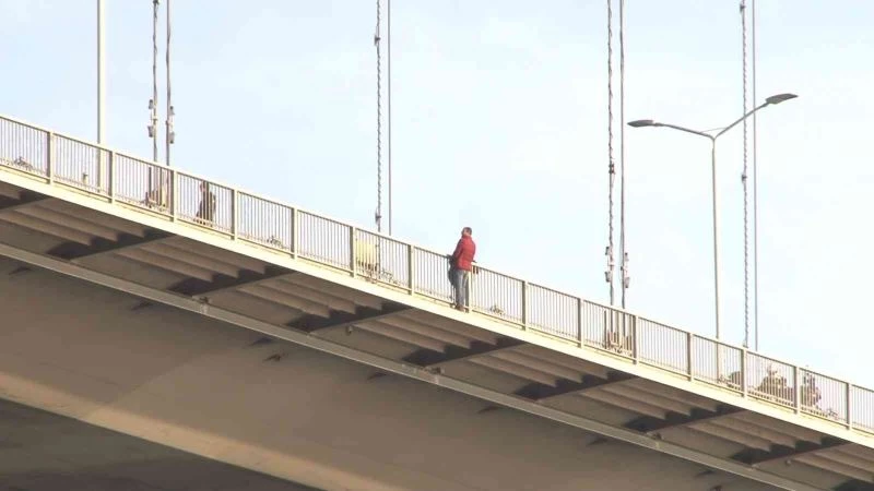 15 Temmuz Şehitler Köprüsü’nde bir kişi intihar etmek için korkuluğa çıktı. Şahıs yaklaşık 1 buçuk saat sonra ikna edilirken, köprü üzerinde trafik oluştu.