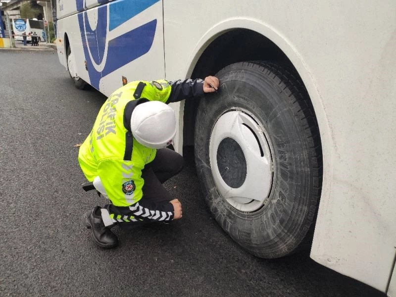 15 Temmuz Şehitler Otogarı’nda şehirlerarası otobüslerde kış lastiği uygulaması yapıldı. Lastiği uyumlu olmayan otobüslere 766 lira para cezası keserek, seferden men edildi. Polis ekipleri, otogar çıkışında gün boyu denetim yapacak.
