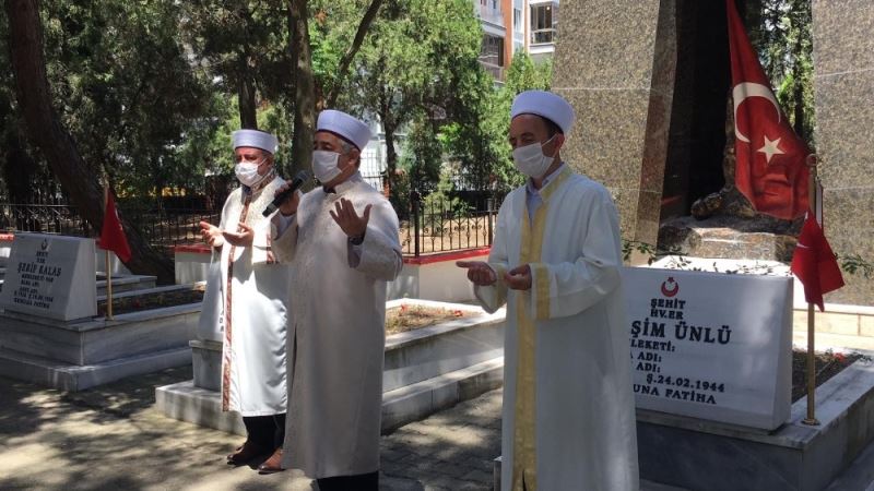 Tören sonunda şehit mezarlarına protokol mensupları tarafından kırmızı karanfiller bırakıldı.