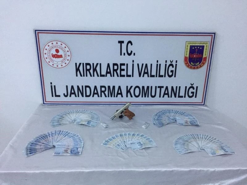 Kırklareli İl Jandarma Komutanlığı ekipleri tarafından, Vize ilçesine bağlı Pazarlı köyünde Ö.Ş. isimli şahıs piyasaya sahte para sürmeye çalışırken suçüstü yakalandı. Şüpheli şahsın üzerinde ve ikametinde yapılan aramalarda, yüzlük banknotlar halinde 161 adet 16 bin 100 TL değerinde sahte para, 2 adet ruhsatsız tabanca, 50 adet 9 mm çapınca mermi, 20 gram kubar esrar ve bir adet ruhsatsız yivsiz av tüfeği ele geçirildi.