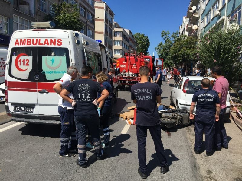İstanbul Fatih’te park halindeki otomobile çarptıktan sonra devrilen motosikletli kurye itfaiye aracının altında ezildi. Kazadan saniyeler öncesi güvenlik kameralarına yansırken, hayatını kaybeden 18 yaşındaki kuryenin yakınları sinir krizi geçirdi.