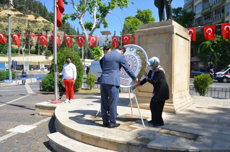 Kilis'teki tören ise Gençlik ve Spor İl Müdürü Metin Kaplan'ın Cumhuriyet Meydanı'ndaki Atatürk Anıtı'na çelenk sunmasıyla başladı.