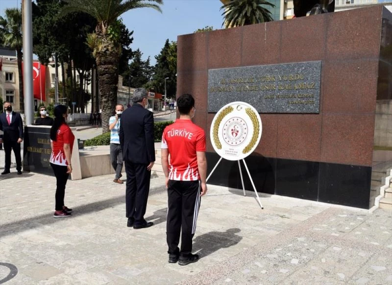 Adana'da, Atatürk Parki'nda gerçeklestirilen törende Il Gençlik ve Spor Müdürü Abdulkadir Atasbak, Atatürk Aniti'na çelenk sundu.