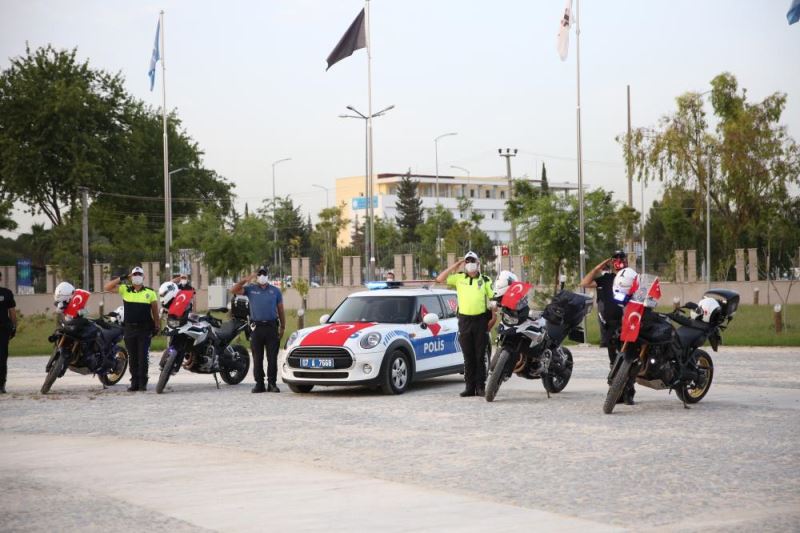 Muratpasa Belediyesince gerçeklestirilen organizasyonda, Kaleiçi Yat Limani'ndan hareket eden tekneler, Düden Selalesi'ne kadar Türk bayraklari ve Ulu Önder Mustafa Kemal Atatürk'ün posterleriyle denizde görsel sölen sundu. Teknedekiler, denizde dev Türk bayragi açti.