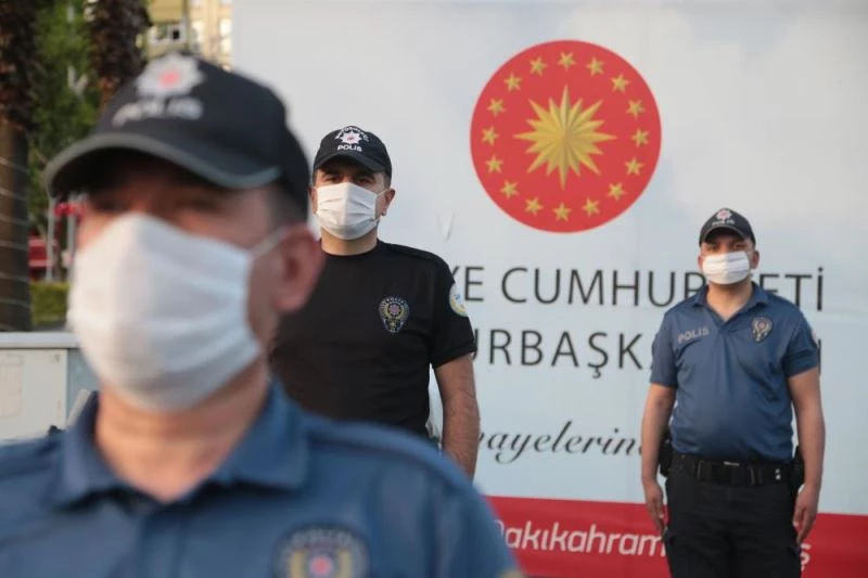 Il Emniyet Müdürlügüne bagli bütün birimlerden olusan polis ekipleri, Ulu Cami Meydani'nda hilal olusturup Istiklal Marsi'ni okudu.